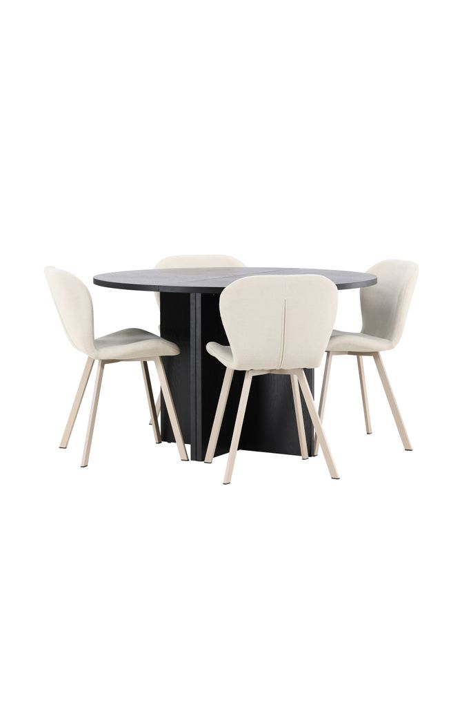 Tillsammans utgör matbordet och stolarna en harmonisk och flexibel matplats där stil och funktion möts. Perfekt för allt från vardagliga måltider till festliga tillfällen.