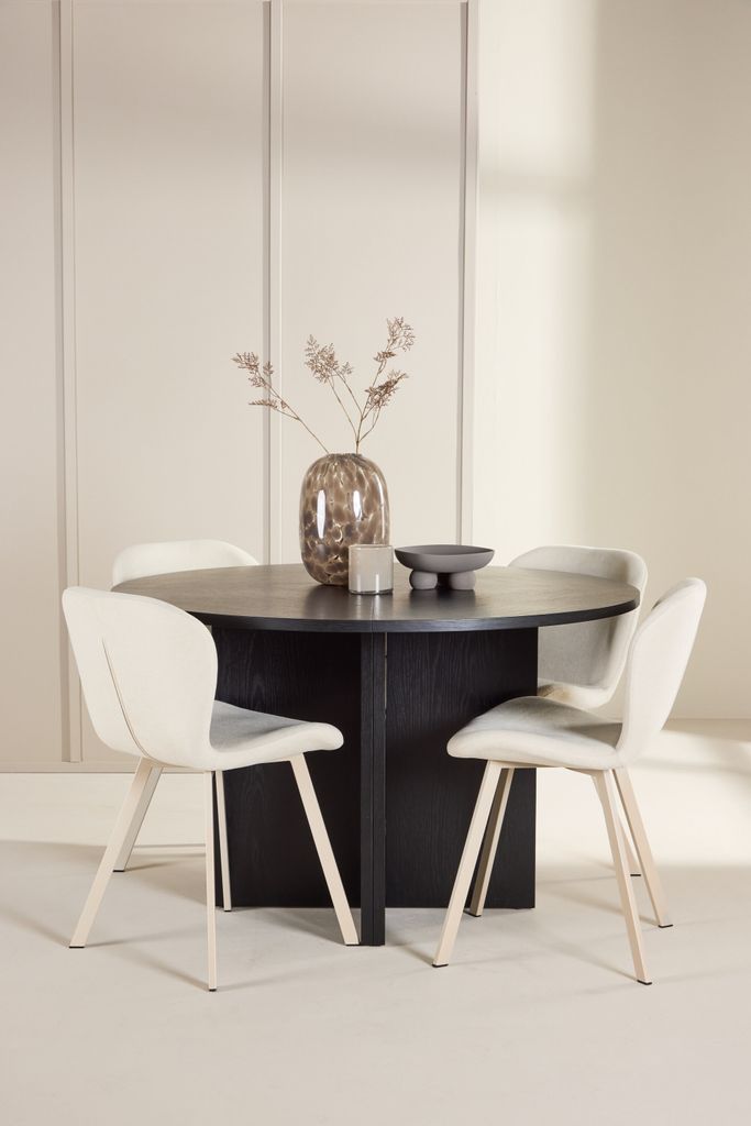 Matbordet Strada utmärker sig med sin tidlösa design i svart fanerträ. Med en diameter på 120 cm skapar bordet en intim miljö för vardagsmåltider, medan den förlängbara funktionen till 170 cm gör det idealiskt för större tillställningar. Den eleganta svarta ytan smälter in perfekt i både minimalistiska och klassiska inredningsmiljöer.