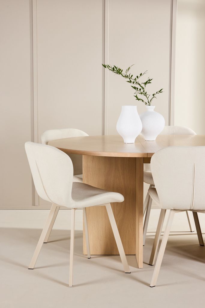 Tillsammans skapar dessa möbler en harmonisk och flexibel matplats som anpassar sig efter dina behov. Från intima middagar till festliga tillställningar, låt denna tidlösa kombination bli hjärtat i ditt hem.