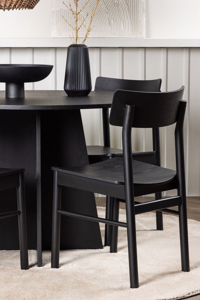 - Komfortabla Stolar: Montros stolarna är tillverkade av svart björk och plywood, och erbjuder både komfort och stil med sina lätt rundade ryggar och stabila raka ben.