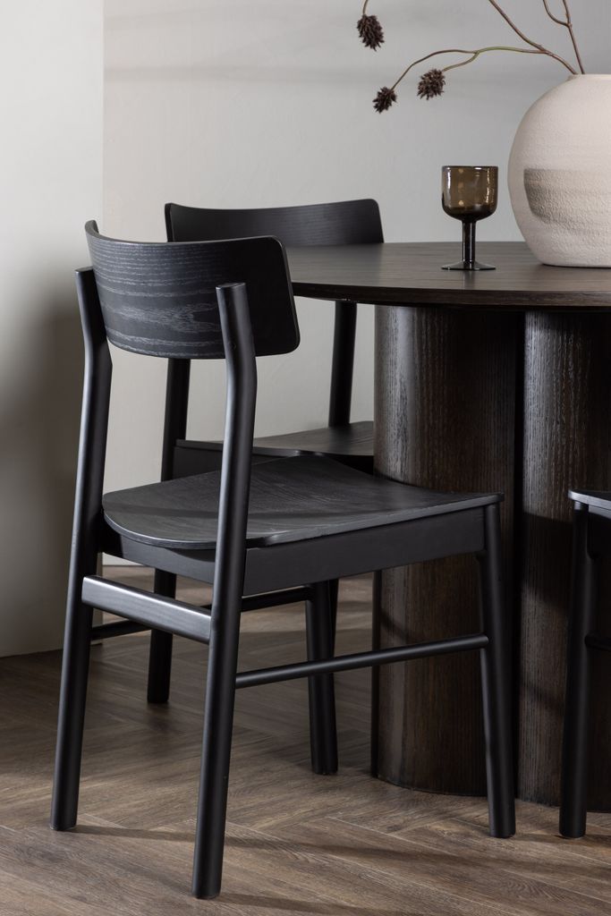 Komplettera din matsal med Montros-stolarna, vars svarta färg och ram av björk ger en modern, tidlös känsla. Stolarna är designade för komfort, vilket gör dem perfekta för långa samtal vid middagsbordet.