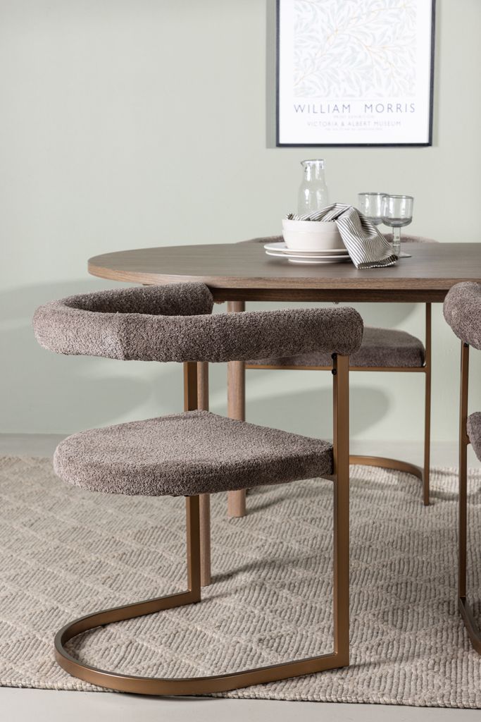 Morning stolarna kompletterar bordet perfekt med sina moderna linjer och bekväma sittplatser. Den grå Polyester Boucle klädseln ger en mjuk och inbjudande känsla, medan de brunfärgade stålramarna lägger till en touch av elegans och stabilitet. Denna matgrupp inkluderar fyra stolar, vilket gör den idealisk för både vardag och fest.
