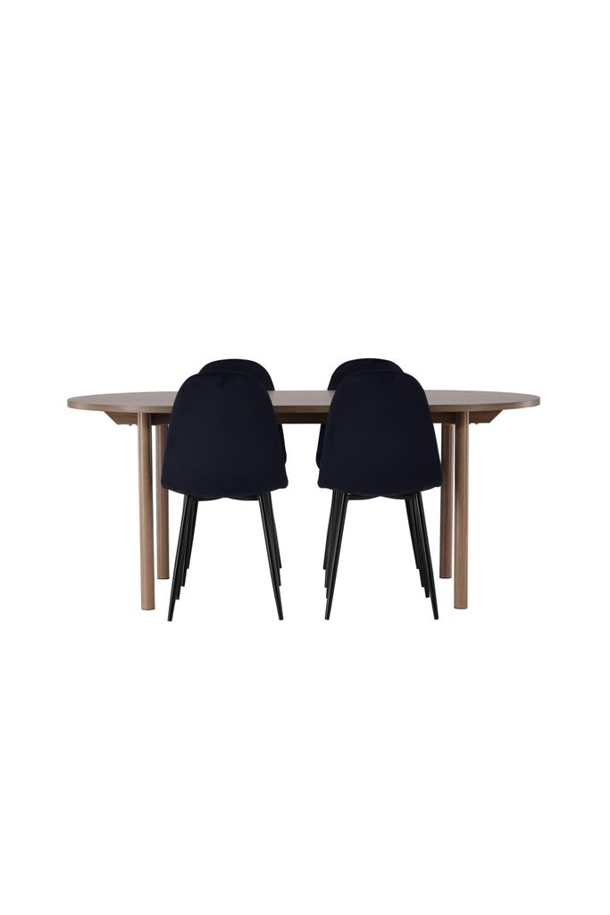 Denna matgrupp inkluderar fyra stolar, vilket gör den idealisk för mindre sällskap och familjemiddagar. Med sin skandinaviska design och ögongripande utseende, blir denna ensemble en elegant inredningsdetalj som lyfter hela rummets atmosfär. Perfekt för att skapa en stilfull och inbjudande matsalsmiljö.