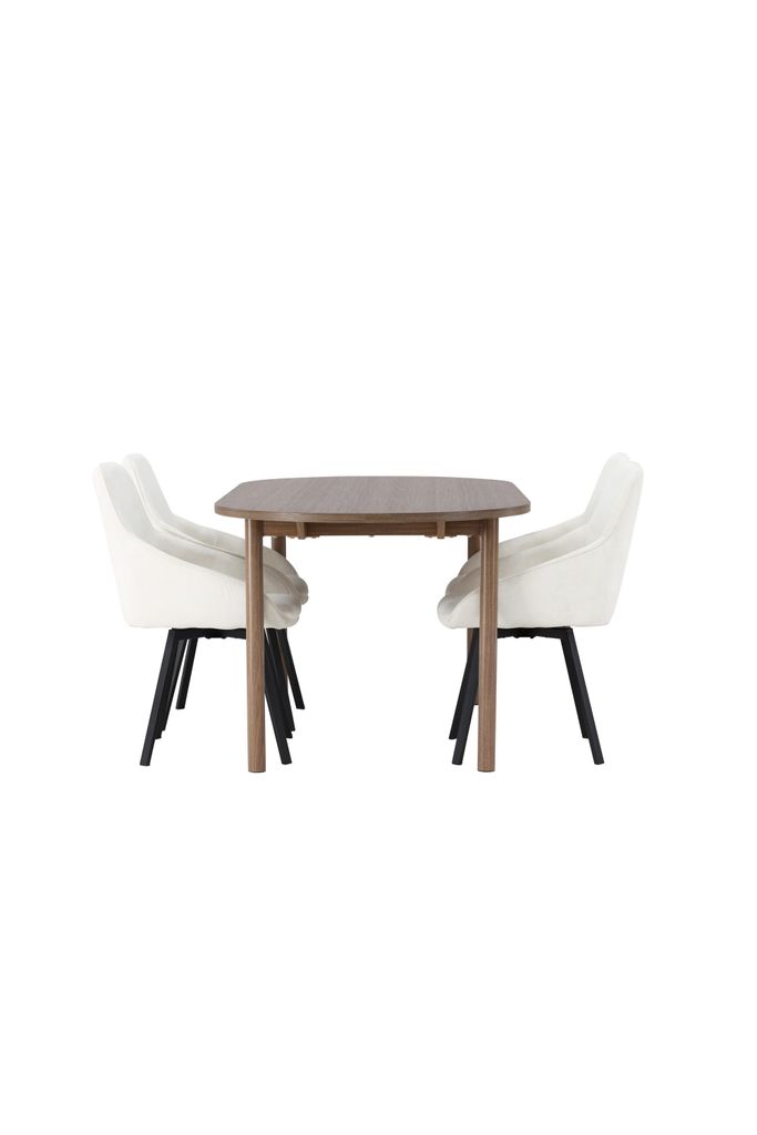 Skapa minnesvärda stunder med familj och vänner runt detta fantastiska matbord. Låt Rosie-stolarna erbjuda den ultimata komforten med deras eleganta design. Sätt tonen i ditt vardagsrum med denna inbjudande matgrupp – där alla känner sig välkomna.