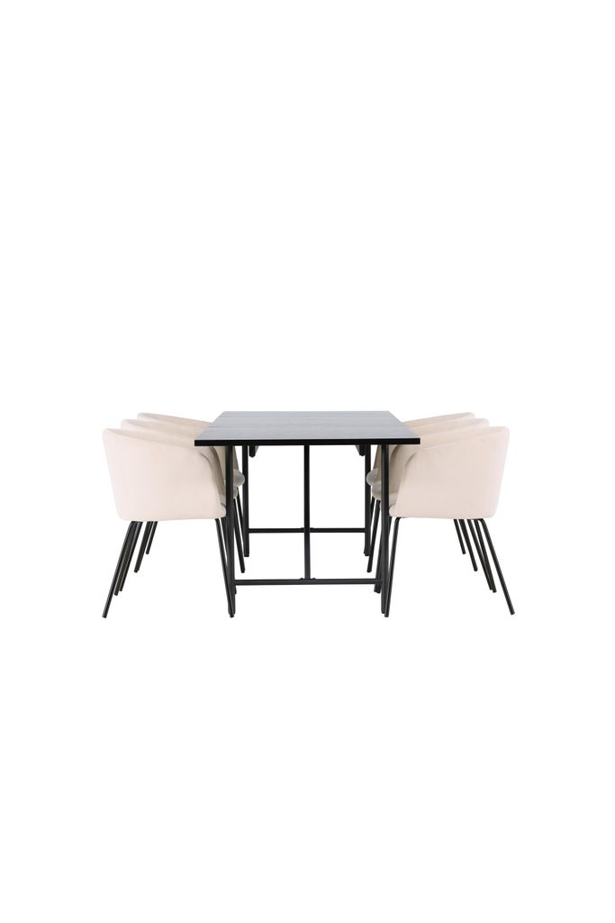 Upptäck en matgrupp som kombinerar skandinavisk elegans med modern funktionalitet. Astrid-bordet imponerar med sin tunna bordsskiva i matt svart, vilket skapar en sofistikerad och stilren atmosfär i ditt hem.