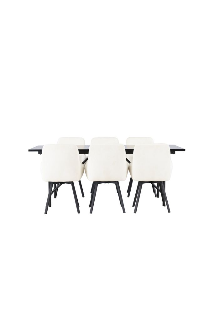 Skapa en inbjudande och stilren matplats med Venture Home matgrupp Astrid, komplett med stolarna Rosie. Denna matgrupp kombinerar modern design med hög funktionalitet, perfekt för ditt hem.