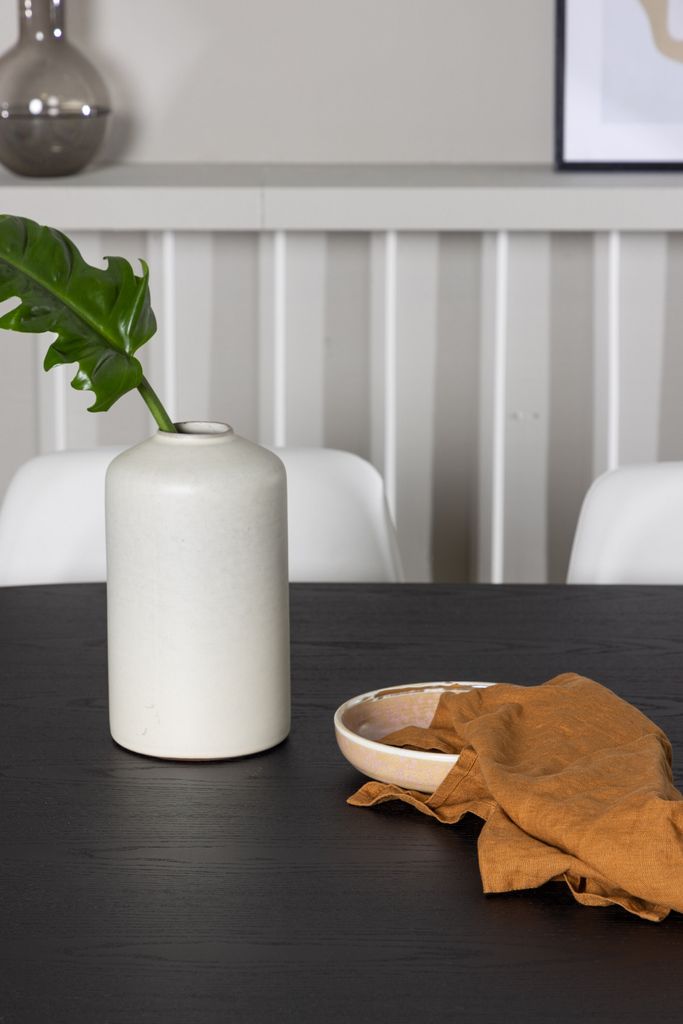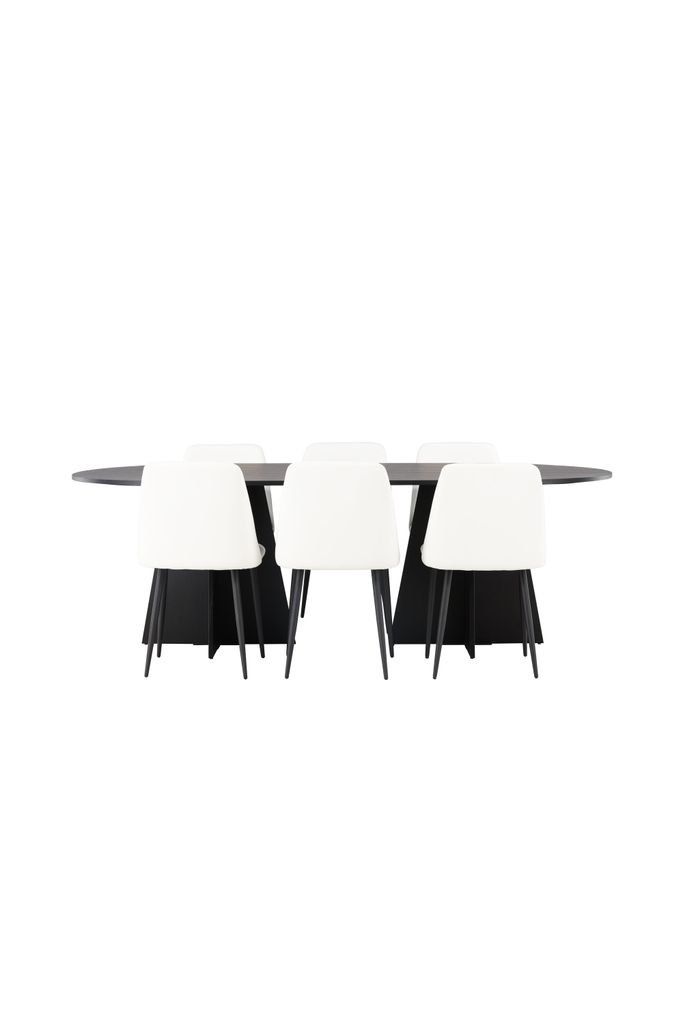 Möblera hemmets hjärta pampigt och stilrent med Venture Home Matgrupp Bootcut, en perfekt kombination av elegans och funktionalitet i skandinavisk stil. Den ovala bordsskivan i svart MDF med faner ger en sofistikerad look, medan den unika stommen med två konformade ben skapar en stabil och estetiskt tilltalande grund. Bordets generösa mått på 115x230 cm gör det idealiskt för att samla familj och vänner.