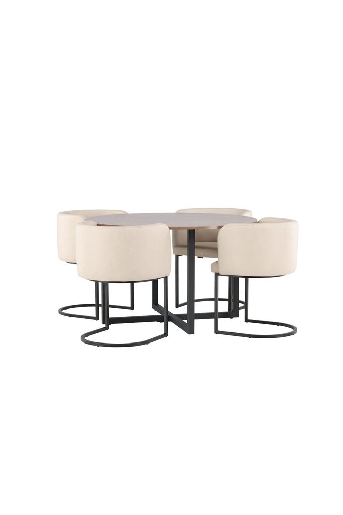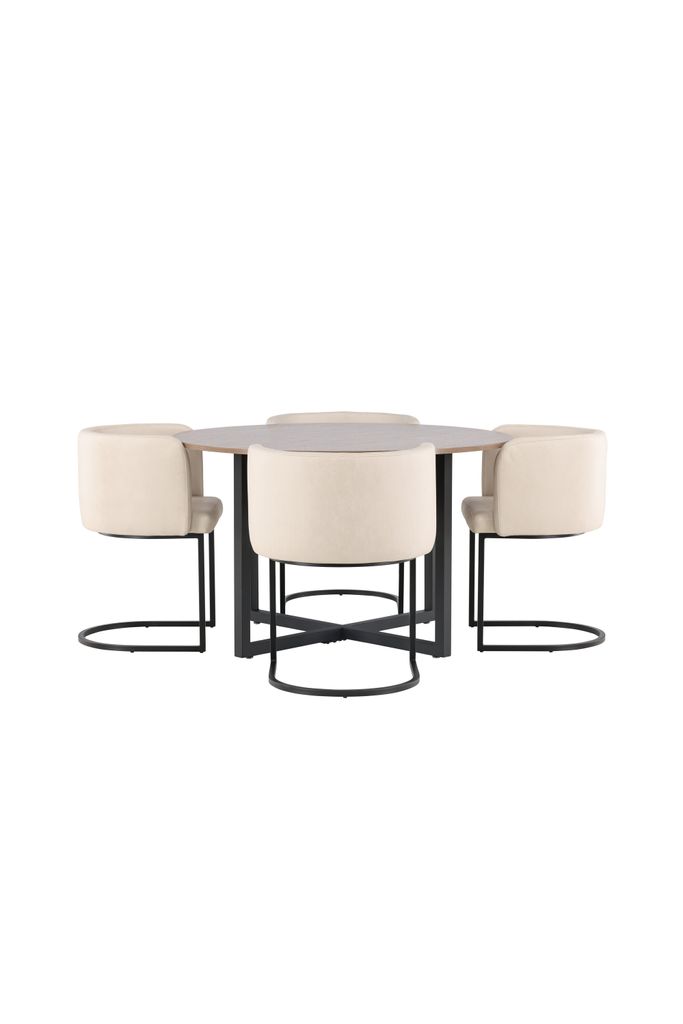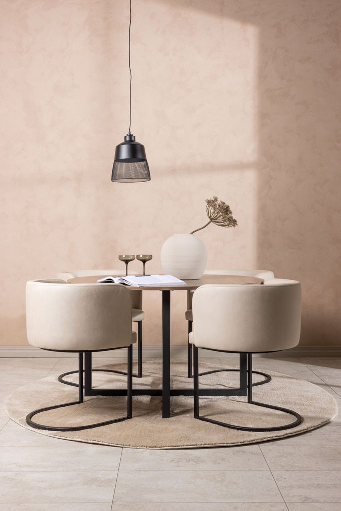 Med sitt stilrena utseende och högkvalitativa material är denna matgrupp ett perfekt tillskott till ditt hem, oavsett om du har en modern eller klassisk inredning. Med en bordsskiva på 120 cm i diameter är den idealisk för både vardagliga middagar och festliga tillfällen.