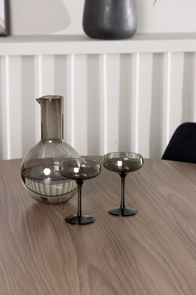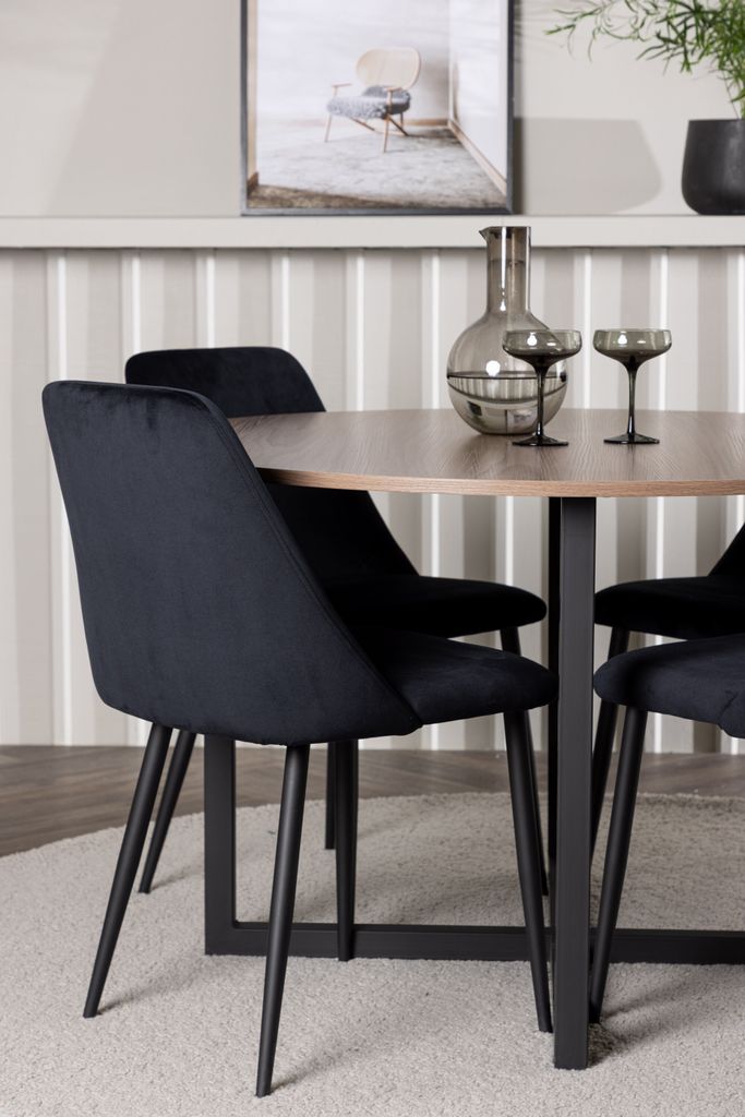 Skandinavisk design möter komfort och stil med Durango-bordet i valnöt och de svarta sammetstolarna Night.