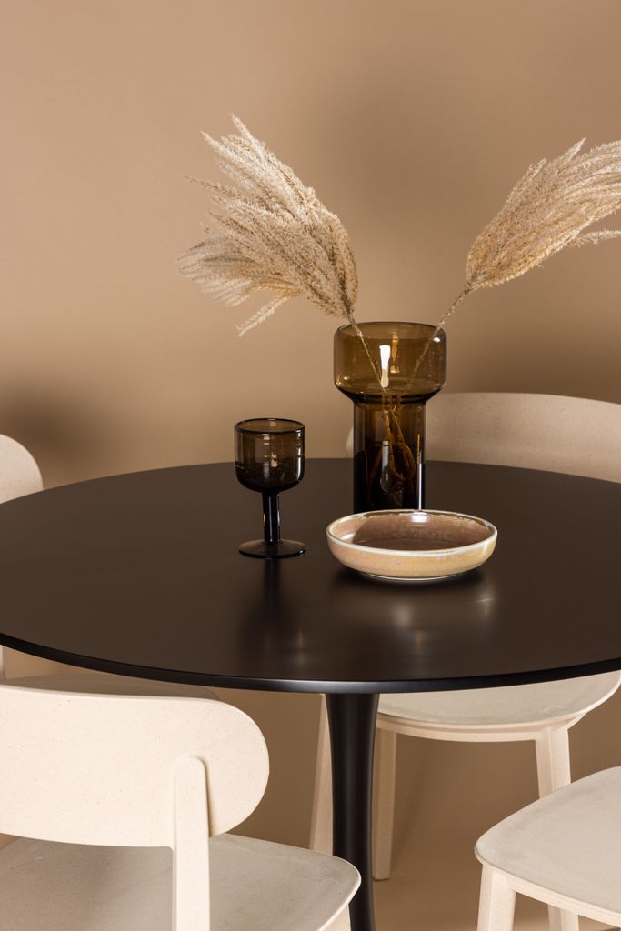 Upplev elegansen hos Venture Home Matgrupp Glade, en perfekt kombination av stil och funktionalitet. Denna matgrupp inkluderar ett runt bord med en modern trumpetfot i svart stål och en bordsskiva i svart MDF, vilket ger en slående kontrast och en stilren känsla till ditt hem.