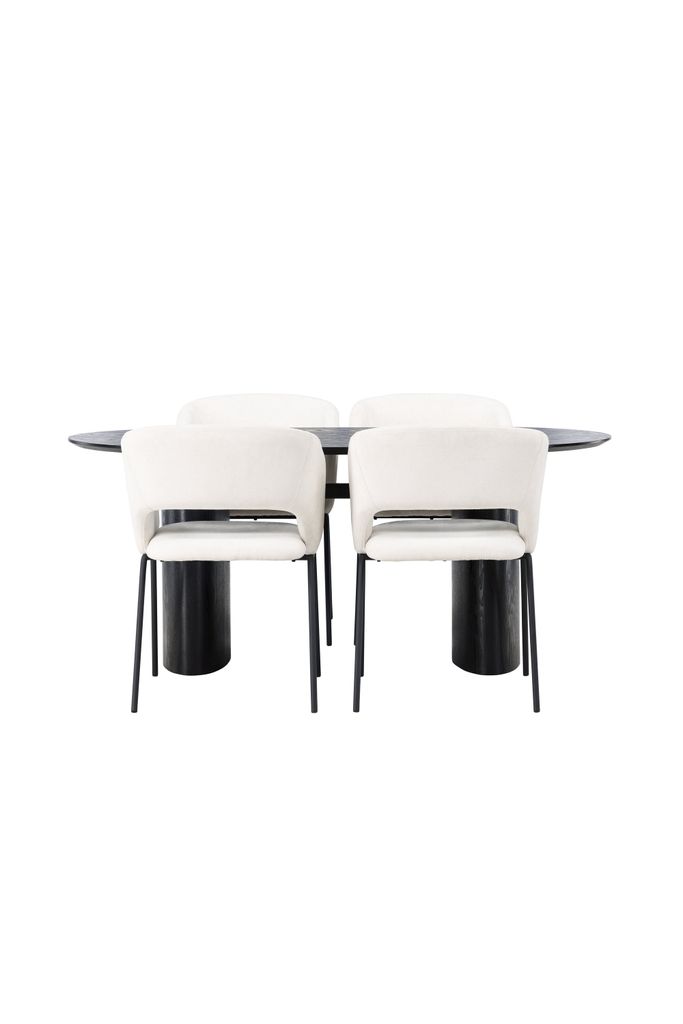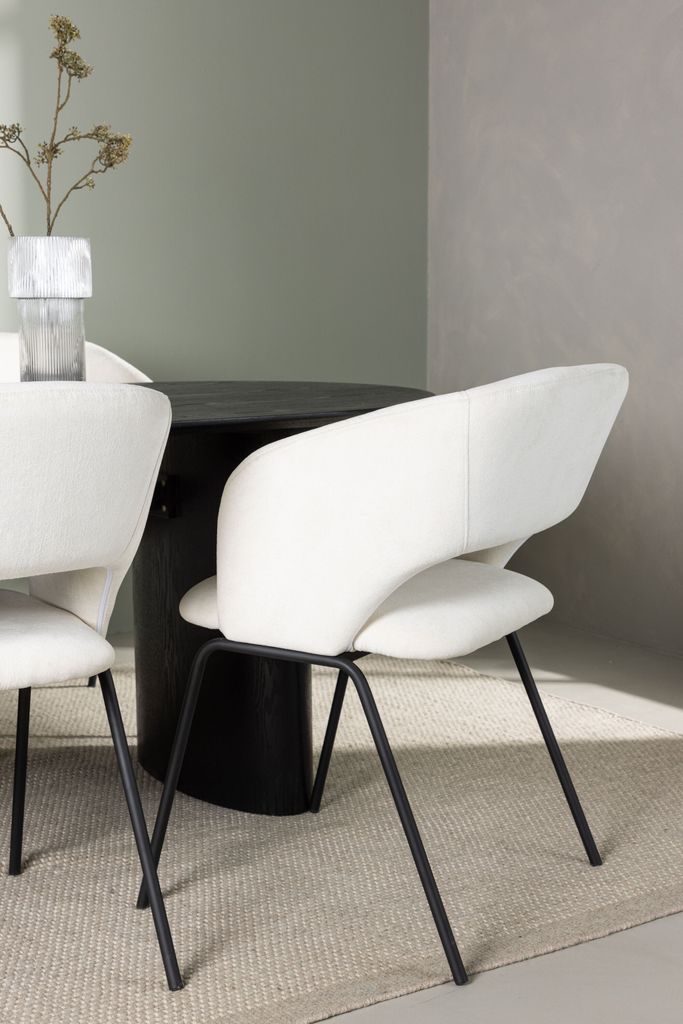 Detaljerna i denna matgrupp är genomtänkta och materialvalen är gjorda för att hålla över tid. Den svarta färgen på bordet och de vita stolarna skapar en tidlös färgpalett som passar i de flesta moderna hem. Tillsammans blir Venture Home Matgrupp Isolde med stolarna Day ett blickfång som verkligen imponerar.