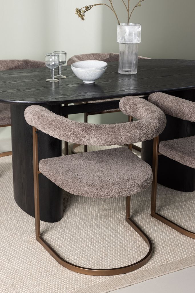 Det svarta ovala matbordet Isolde har en modern design med en bordsskiva i MDF och faner som framhäver materialets vackra mönster. Den robusta stommen ger stadighet och gör det till ett blickfång i rummet. Bordet mäter 180x75 cm, vilket ger gott om plats för både vardagliga måltider och större sammankomster.
