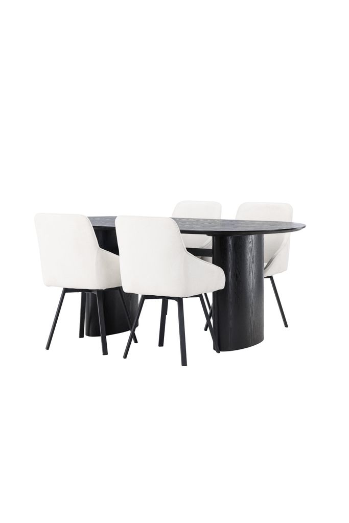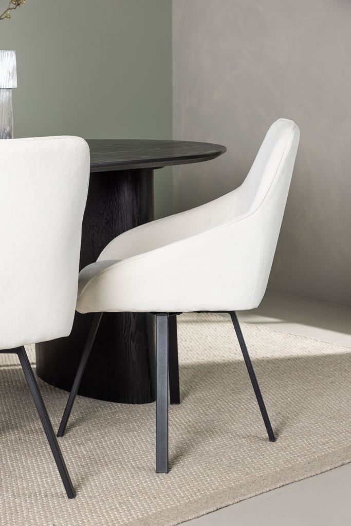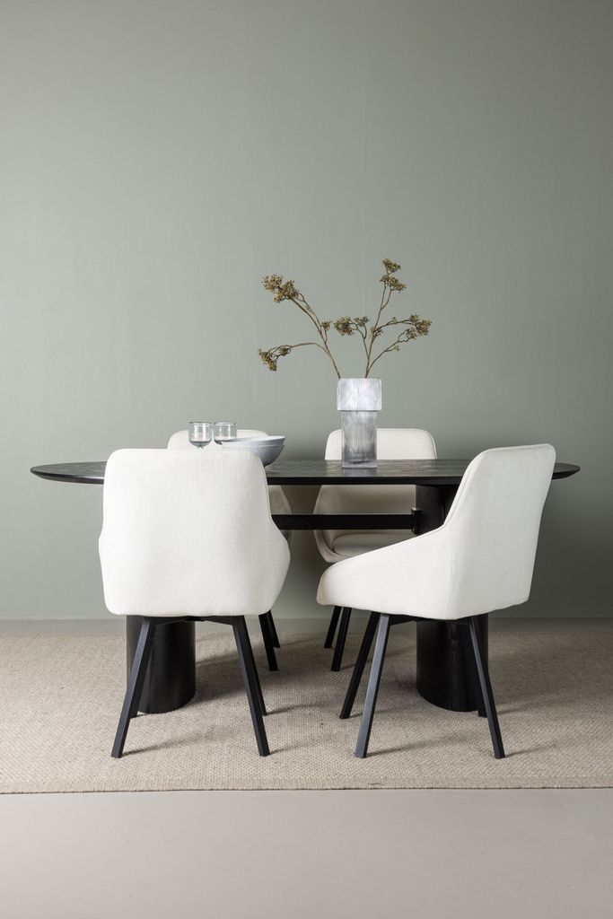Upplev den perfekta kombinationen av modern design och komfort med Venture Home Matgrupp Isolde, kompletterad med de eleganta Rosie-stolarna. Det svarta ovala bordet Isolde är tillverkat i MDF och har en robust stomme som ger ett stabilt intryck. Dess levande material ger en smakfull rörelse och är ett blickfång i varje matsal.