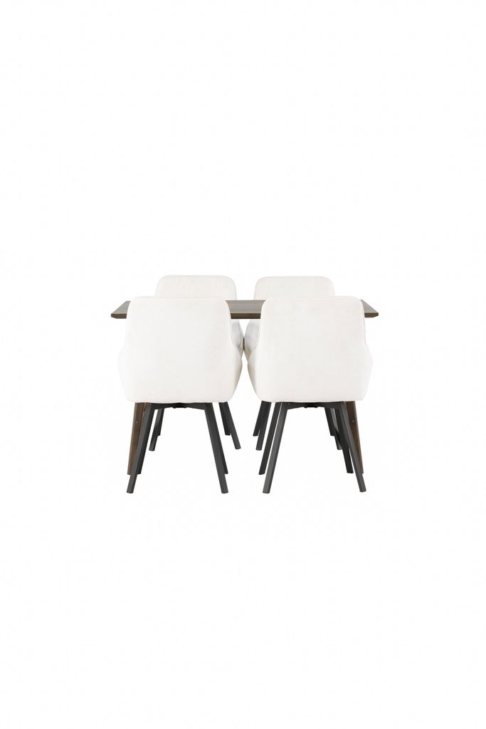- Färg: Valnötsbrun bordsskiva, beige stolar