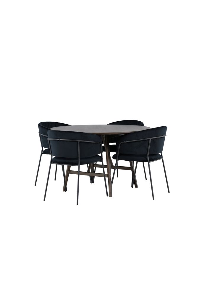 Matbordet Kaseindon har en rund bordsskiva i högkvalitativ MDF och lätt utsvängda ben i hållbart gummiträ. Den moderna valnötsfärgen ger en jordnära ton och smälter lätt in i olika interiörer. Bordets diameter är 100 cm, vilket gör det perfekt för både stora och små utrymmen.