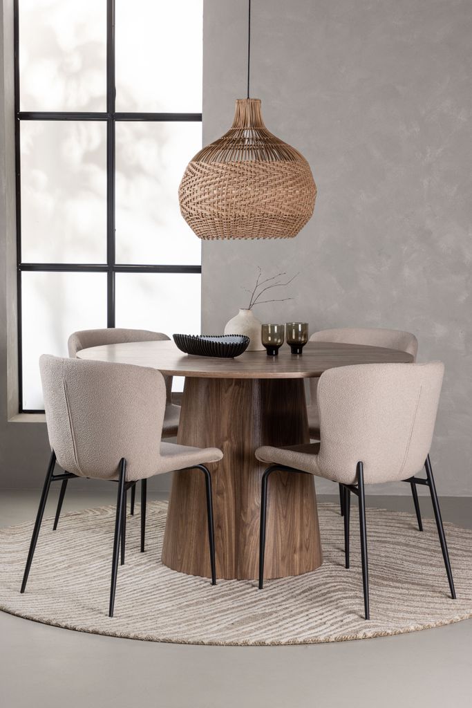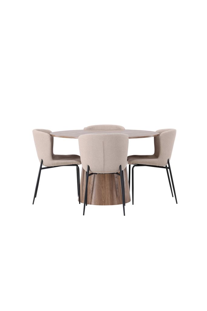 Upptäck den perfekta kombinationen av stil och komfort med Venture Home Matgrupp Lanzo med stolarna Modesto. Det runda bordet Lanzo har en elegant design i jordnära MDF, med en tunn toppskiva och en unik vriden cylinderformad stomme som ger ett modernt intryck. Bordets diameter är 120 cm, vilket gör det idealiskt för både små och stora samlingar.