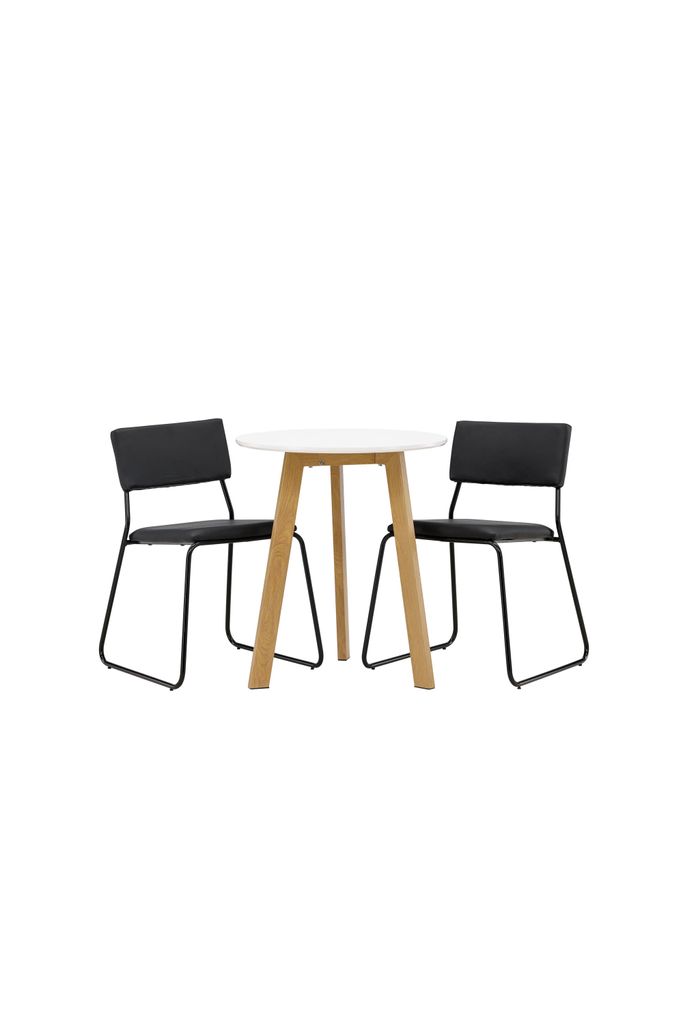 Matgruppen är idealisk för mindre utrymmen, utan att kompromissa på stil eller funktionalitet. Med en bordsskiva med en diameter på 65 cm passar den perfekt i kök eller mindre matrum.