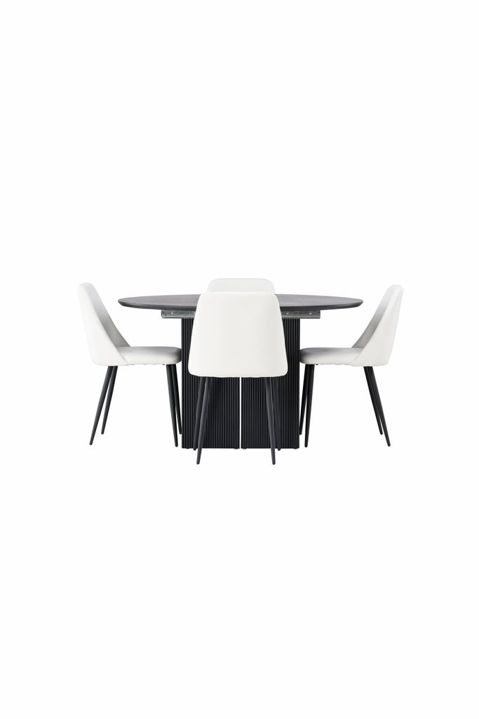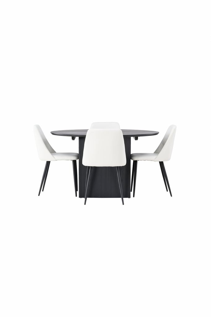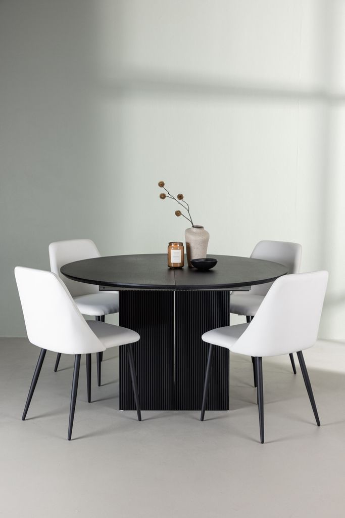 Elegant matgrupp med rundbord Matilda och vita Night-stolar. Stilfull design och smart funktionalitet för ditt hem.