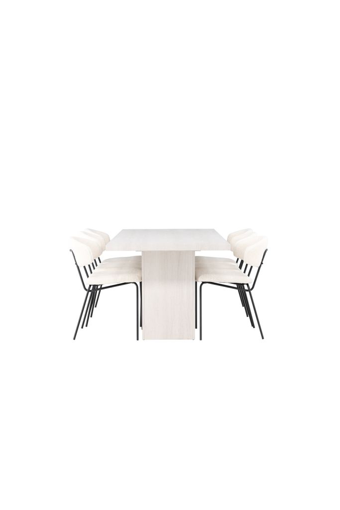 Ge ditt hem en modern touch med Venture Home Matgrupp Olga med stolarna Chico. Denna stilrena matgrupp kombinerar skandinavisk minimalism med hållbara material för att erbjuda både form och funktion.
