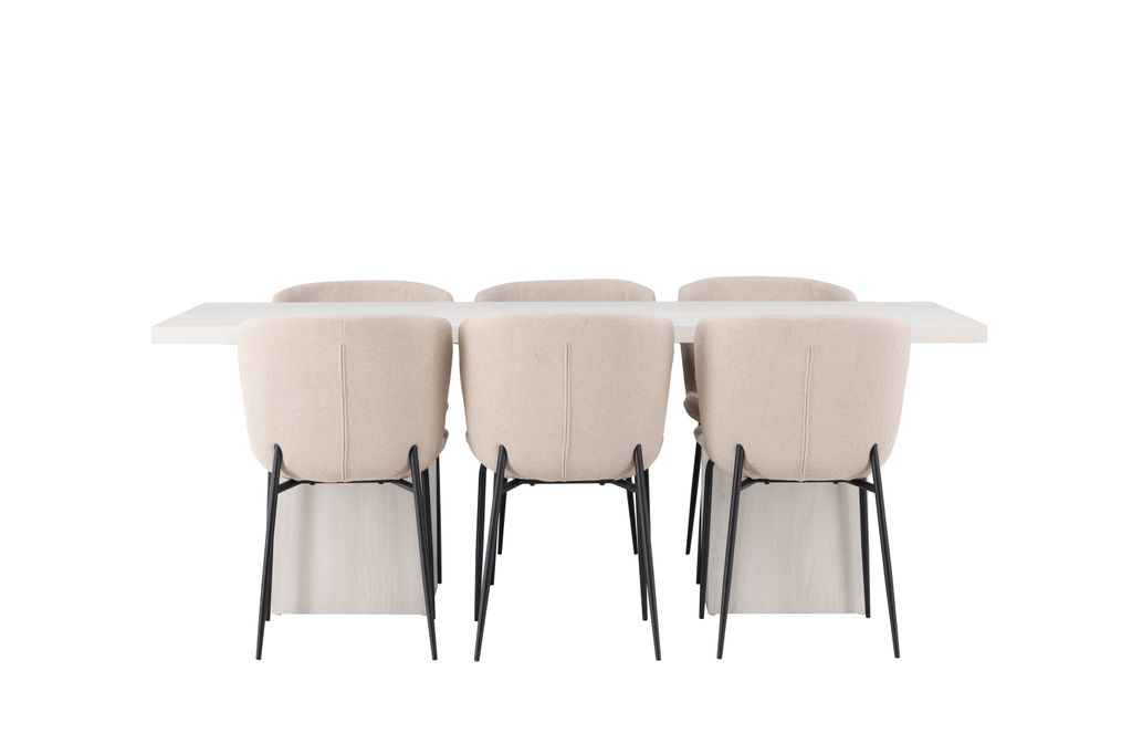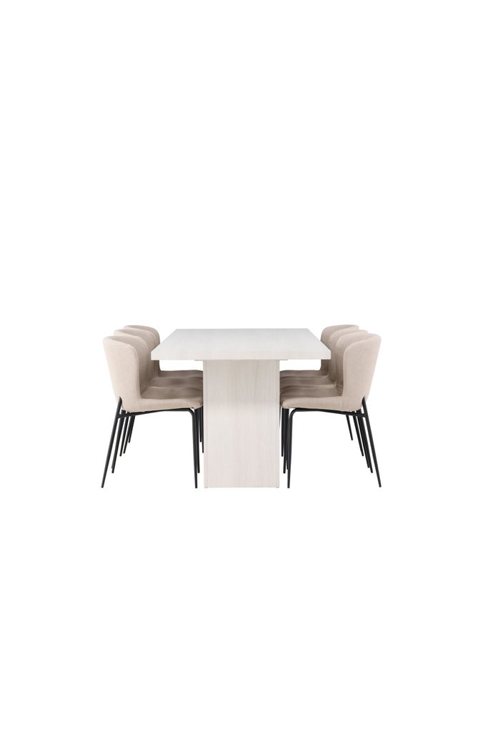 Uppdatera ditt hem med Venture Home Matgrupp Olga, där modern stil möter funktionalitet. Detta eleganta set inkluderar ett rektangulärt matbord och sex eleganta stolar, perfekt för att skapa en inbjudande atmosfär i ditt vardagsrum.