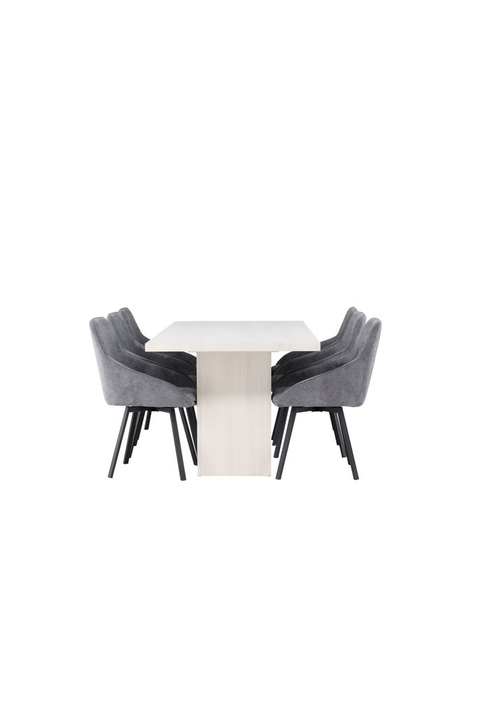 Detta set är den perfekta kombinationen av stil och funktion, vilket gör det till ett utmärkt val för alla som vill möblera sitt hem med trendsäkra och bekväma möbler. Låt Venture Home Matgrupp Olga med stolarna Rosie bli mittpunkten i ditt hem och skapa minnesvärda stunder med nära och kära.