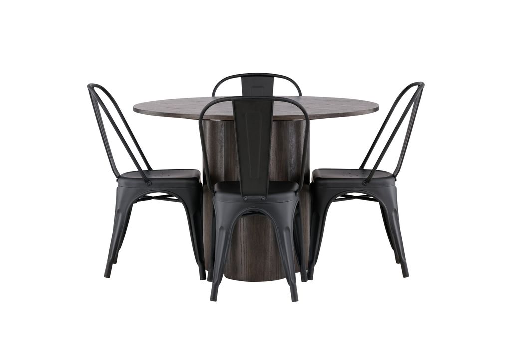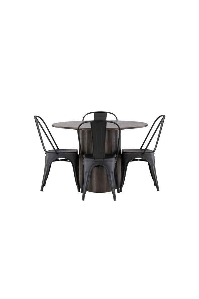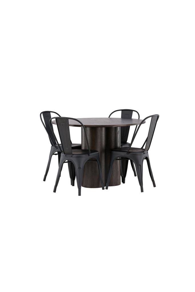 Bordet har en diameter på 110 cm, vilket gör det idealiskt för både mindre och medelstora utrymmen. Den här matgruppen är inte bara en plats att äta, utan också en stilfull mittpunkt i ditt hem.