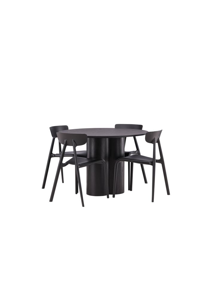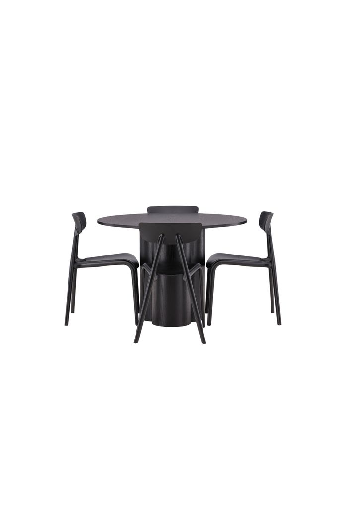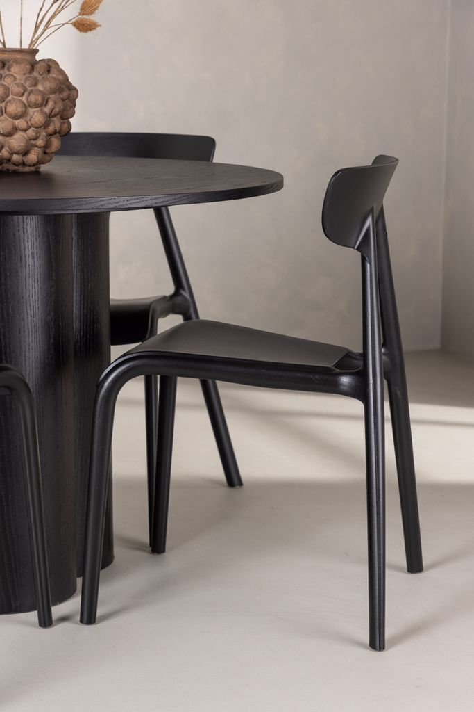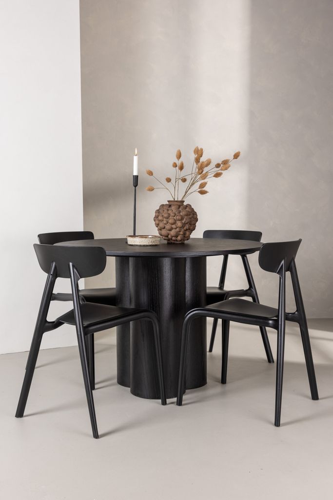 Förhöj ditt hem med Venture Home Matgrupp Olivia, en perfekt fusion av stil och funktionalitet. Denna matgrupp imponerar med sin Skandinaviska design och eleganta utformning i en kaxig svart kulör. Det runda bordet har en toppskiva i MDF, stödd av tre cylinderformade ben som ger en stabil och unik estetik.