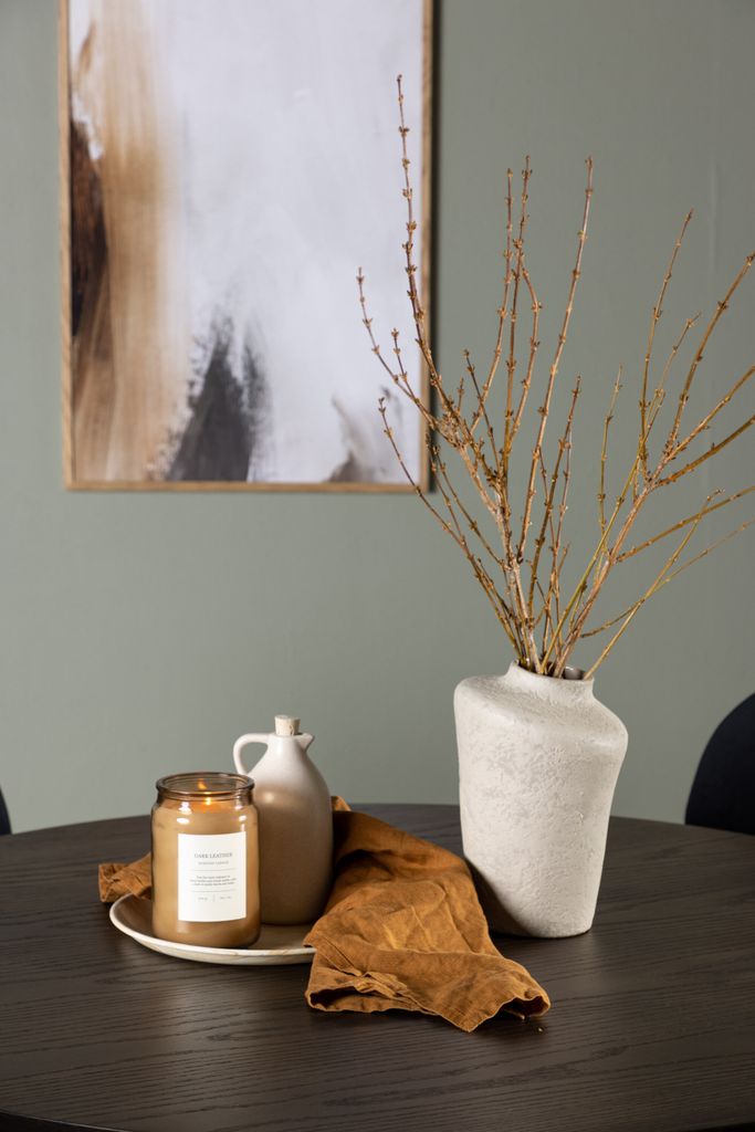 Det runda bordet Olivia är designat i en modern skandinavisk stil med en sofistikerad mocca-kulör. Bordet är tillverkat av högkvalitativ MDF och har en rund toppskiva på 110 cm i diameter. Den robusta stommen med tre cylinderformade ben i mitten ger både stabilitet och en unik design.