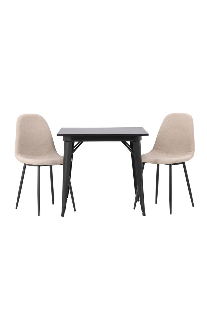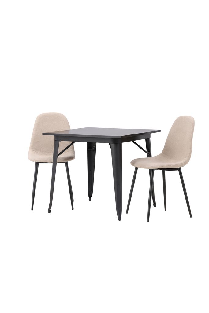 Venture Home Matgrupp Tempe med stolarna Polar bjuder in till stilfulla måltider med sitt eleganta skandinaviska utseende. Den kvadratiska bordsskivan i svart MDF kompletteras av robusta bordsben i svart metall, vilket ger en solid och modern känsla. Bordet är kompakt med måtten 80x80 cm, vilket gör det idealiskt för mindre utrymmen.