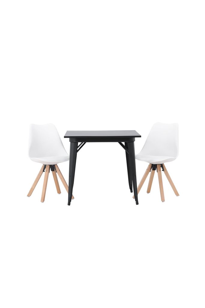 Denna matgrupp är inte bara en fröjd för ögat utan också en praktisk lösning för ditt hem. Bordets mått är 80x80 cm, vilket gör det idealiskt för mindre matsalar eller kök.