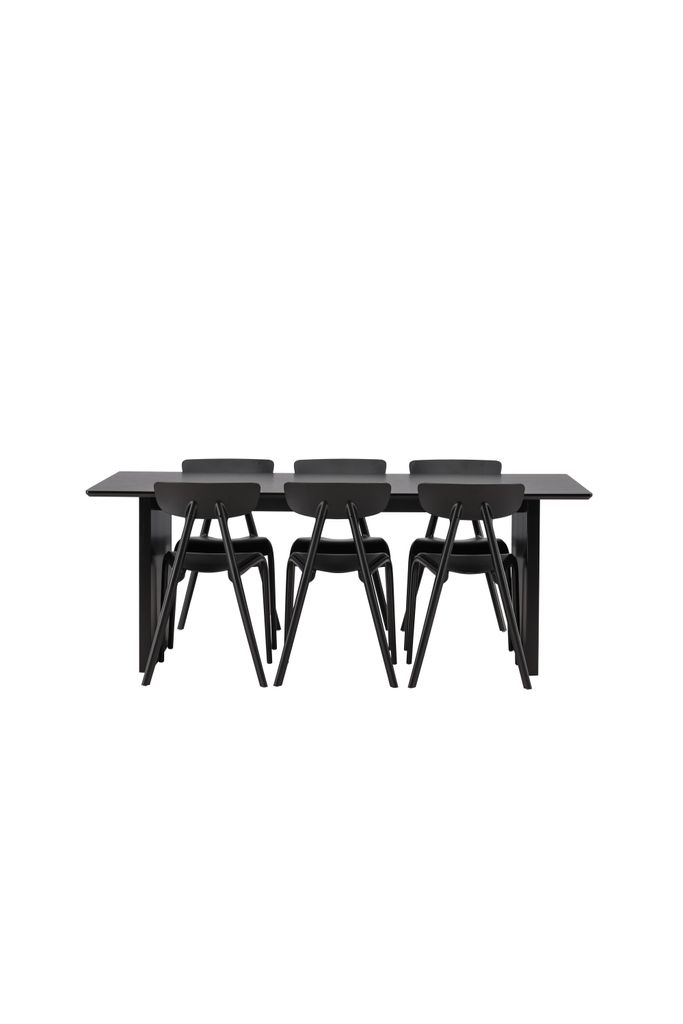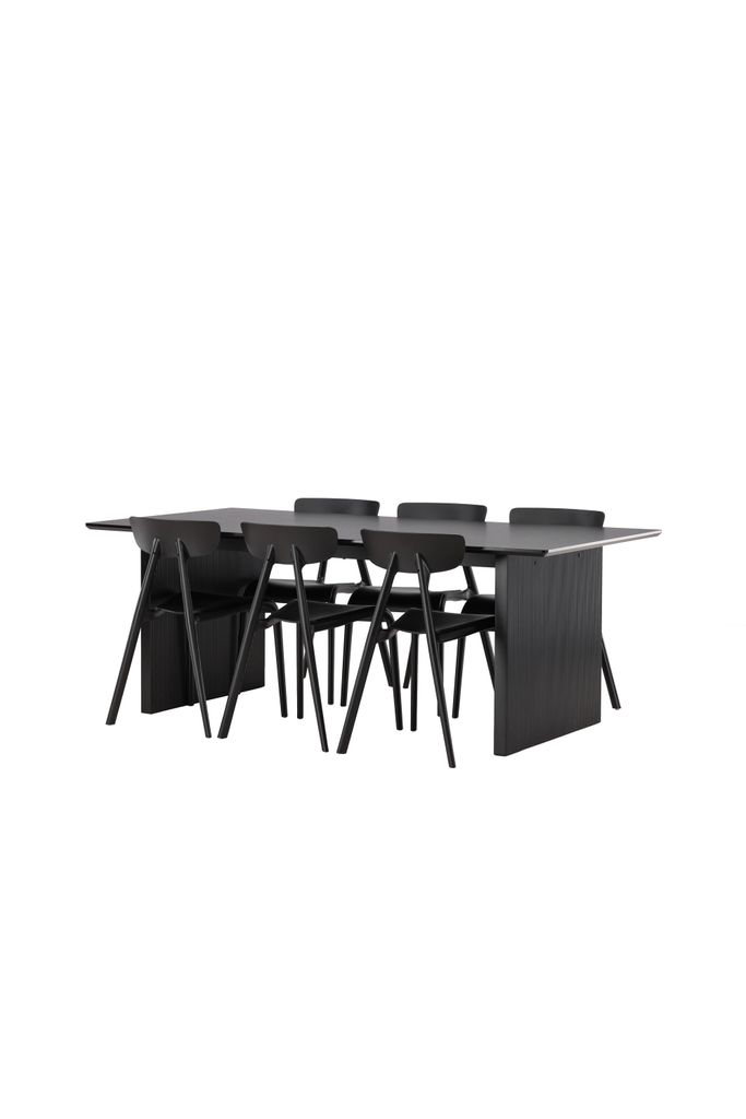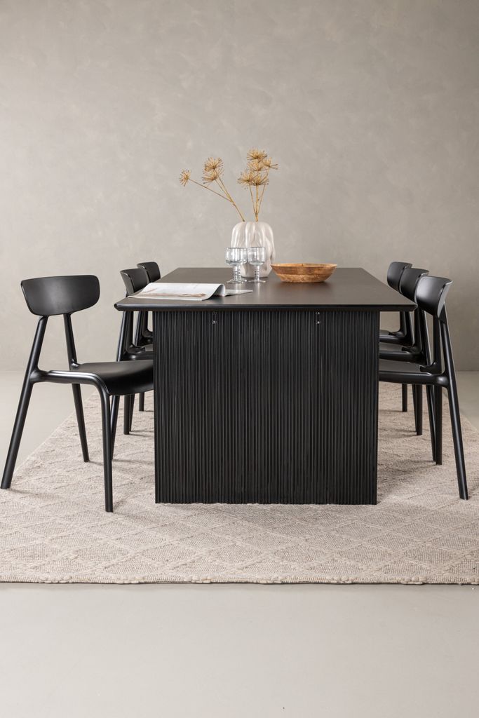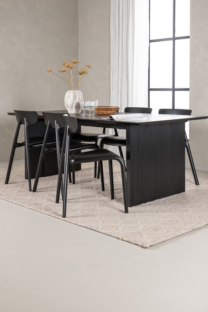 Elegant och modern matgrupp i svart MDF med stilrena stolar i skandinavisk design. Perfekt för en tidlös inredning.