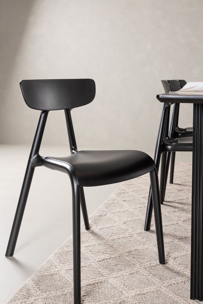 De medföljande Ursholmen stolarna är gjorda av slitstark plast i en smäcker svart kulör, vilket gör dem enkla att matcha med övrig inredning. Stolarna har en nätt rygg, något djupare sittplatser, och ben som är lätt utsvängda för att ge en stilren skandinavisk känsla.