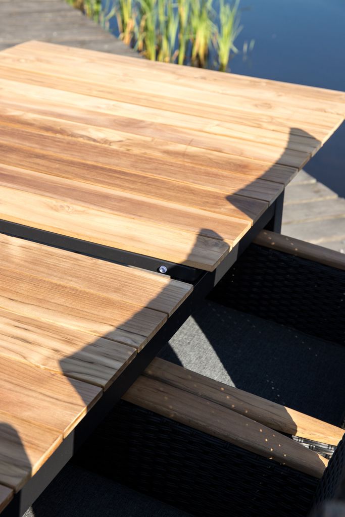 - Hållbart material: Tillverkat av certifierad teak och svart metall, vilket ger både stil och hållbarhet.
