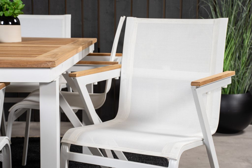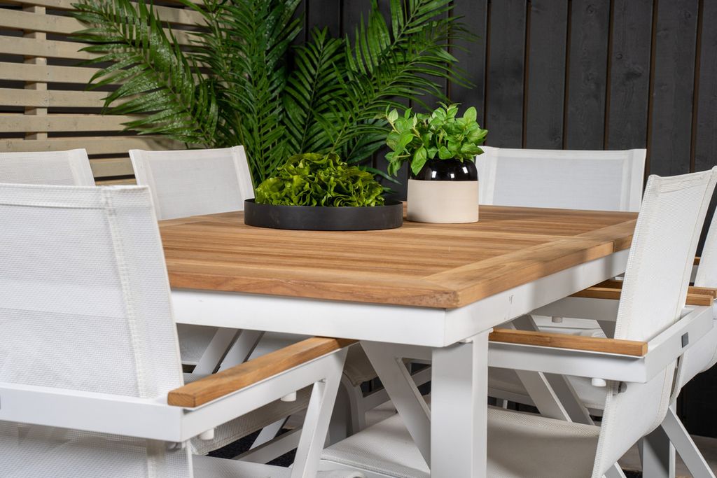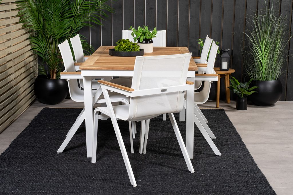 Venture Home Togo & Kenya Rektangulärt Matbord 200 x 100 Vit + 6 st Positionsstolar Natur