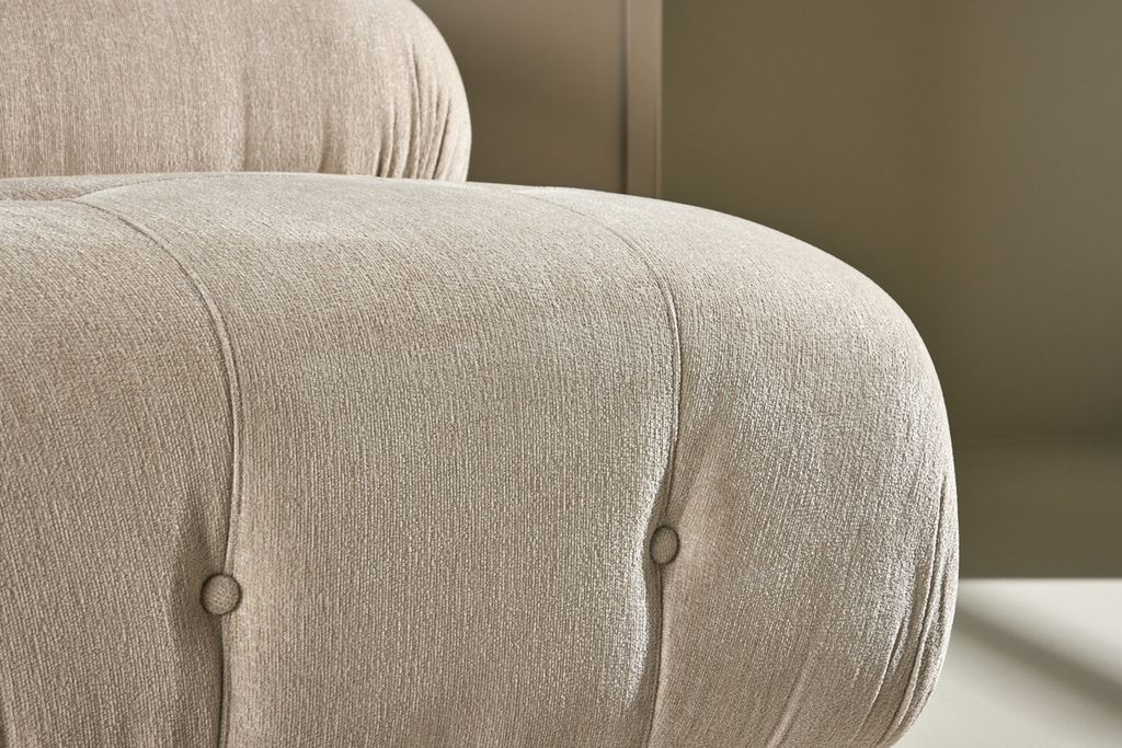 Den mjuka beige nyansen ger ett varmt och inbjudande intryck, samtidigt som den enkelt kan kombineras med olika färger och material. Mika är designad för att vara lika bekväm som den är snygg, med en stoppning som ger ett utmärkt stöd för avkopplande stunder.