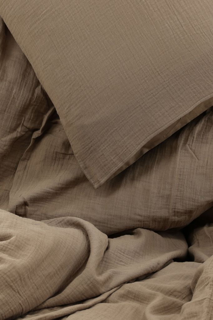 Bäddsetet är perfekt för att komplettera en naturlig och jordnära inredning. Blanda med andra kulörer eller håll en enhetlig stil för att framhäva de subtila nyanserna av jordtoner. De krinklade texturerna skapar en visuell och taktil dimension som gör sängen både elegant och inbjudande.
