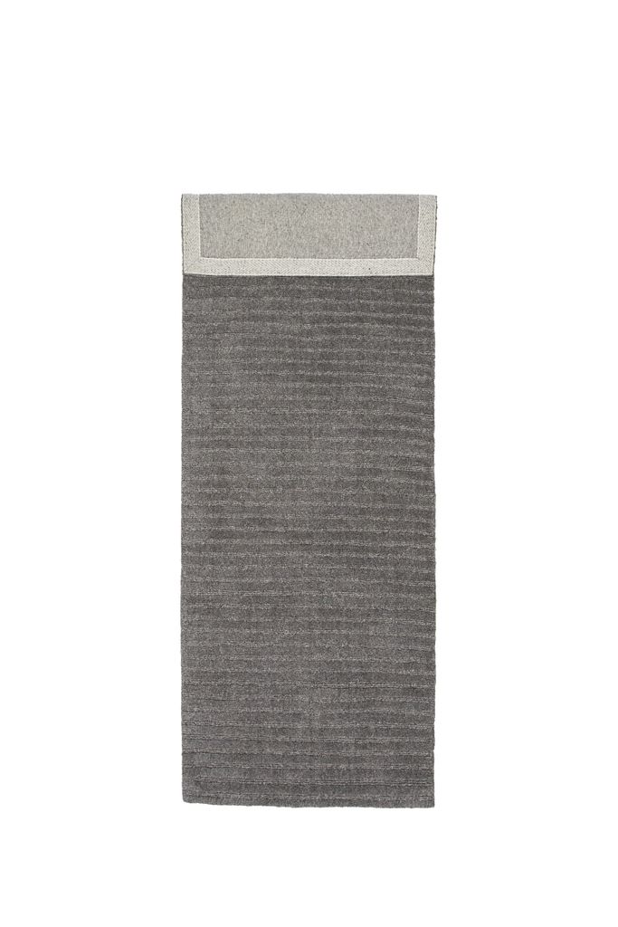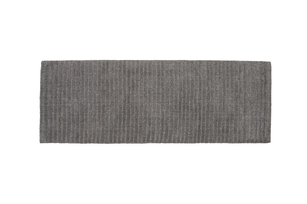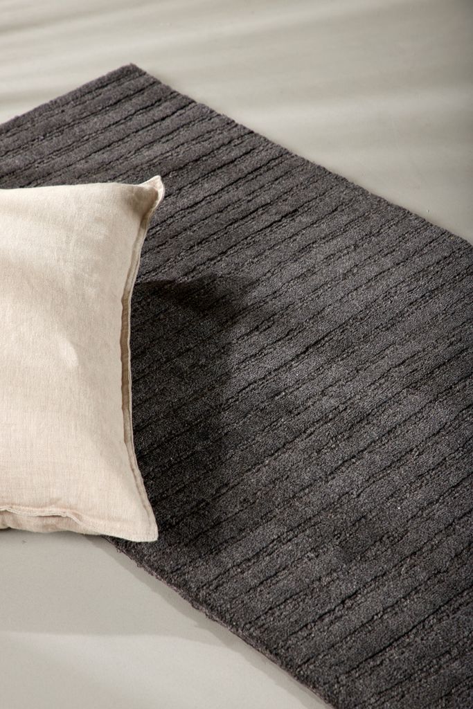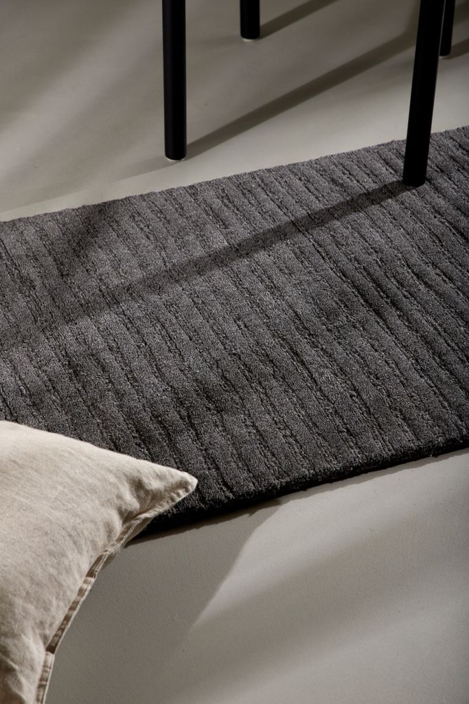 Smart och stilren matta i mörkgrå ull med ribbad design, perfekt för att lyfta din inredning.