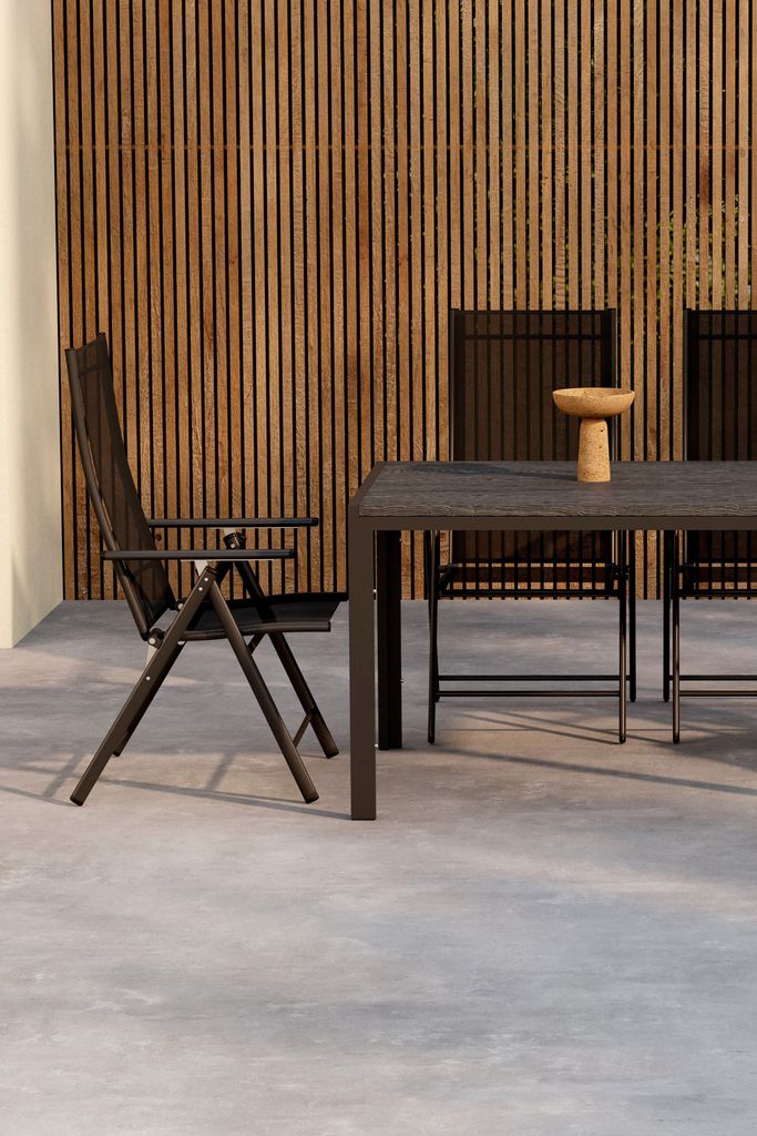 Levanzo Matstol är en praktisk och stilren stol med en ram i svart stål och en sits i slitstarkt textilene. Stolen är ihopfällbar, vilket gör den enkel att förvara och ta fram vid behov. Ryggstödet är dessutom justerbart, så att du kan anpassa stolen för optimal komfort – perfekt både vid middagar och för avkoppling i solen.