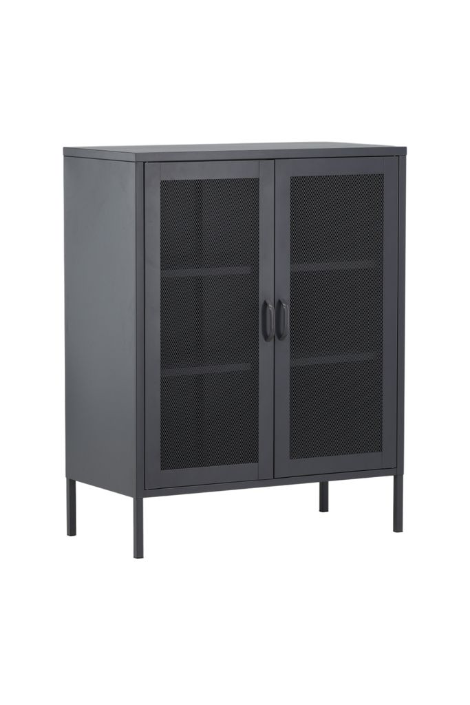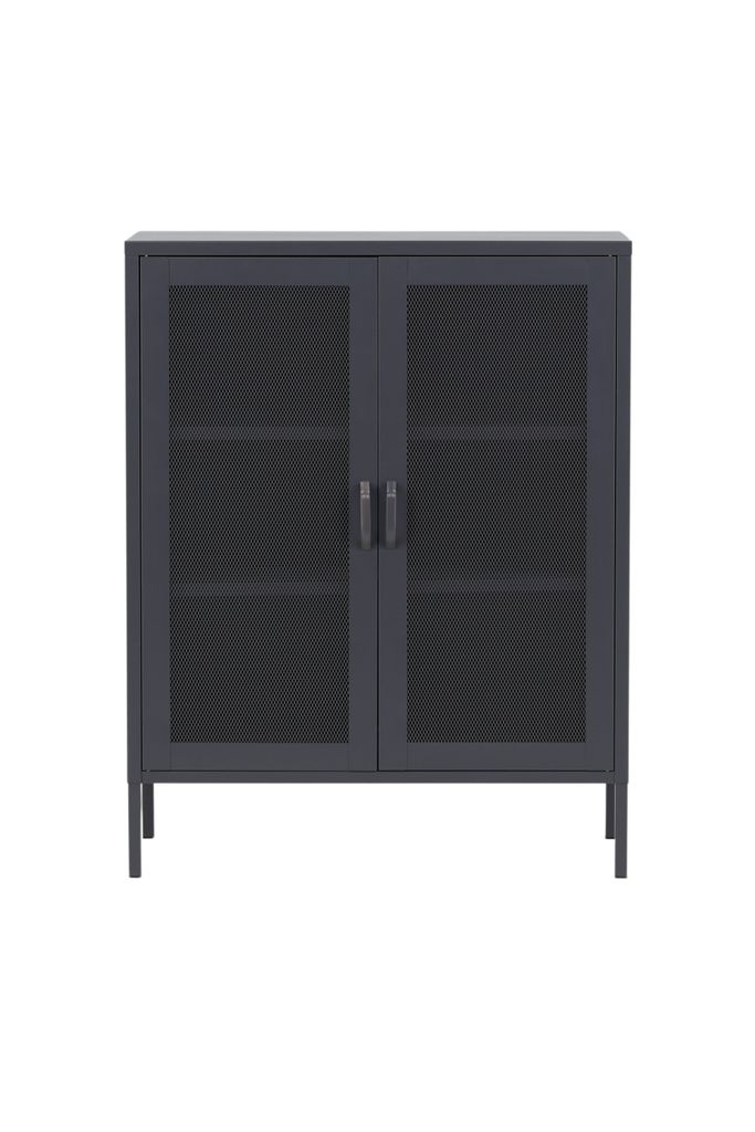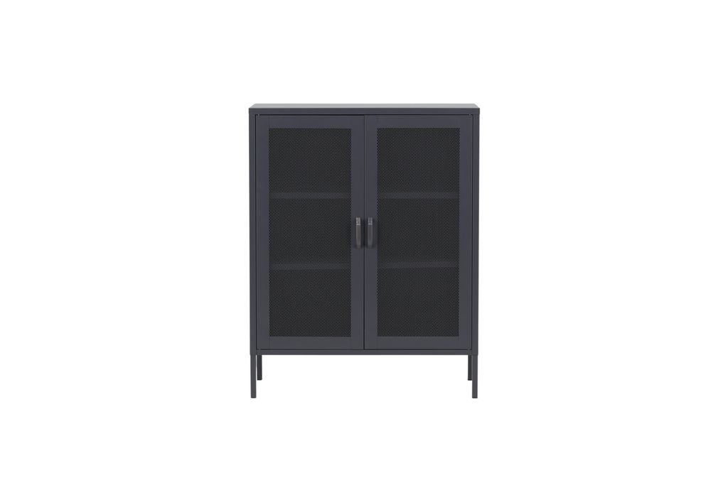 Upptäck Venture Home Misha Förvaringsskåp, en förvaringslösning som kombinerar funktionalitet med stilren industridesign. Skåpet är tillverkat i grå pulverlackerad stål och har eleganta nätdörrar som ger en modern touch till hemmet. Med tre smarta avlastningsytor erbjuder Misha gott om plats för porslin, böcker eller vackra dekorationer.