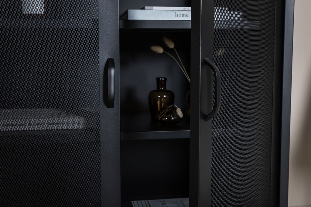 Misha är ett stilrent skåp tillverkat helt i svart stål – ett robust och hållbart material som ger en tydlig karaktär till rummet. Designen är stram men uttrycksfull, perfekt för dig som gillar funktionell form med ett industriellt uttryck.