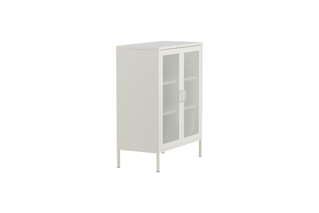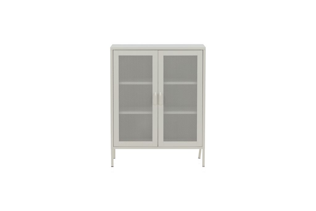 Misha, i en tuff industriell design med läckra nätdörrar och ben tillverkade i vit pulverlackerad stål med 2 smarta hyllplan för avlastning. Skåpet lyfts upp av smala, höga ben som skapar en luftig känsla och underlättar även för dammsugaren. Den perfekta förvaringsmöbeln för allt du önskar - fyll med porslin, böcker eller vackra dekorationer. Skåpets smidiga storlek och eleganta utsida gör den lättplacerad och passar bra in i de flesta rum i hemmet, så möblera efter egna behov och önskemål!