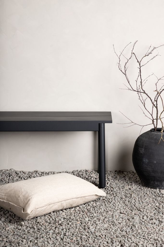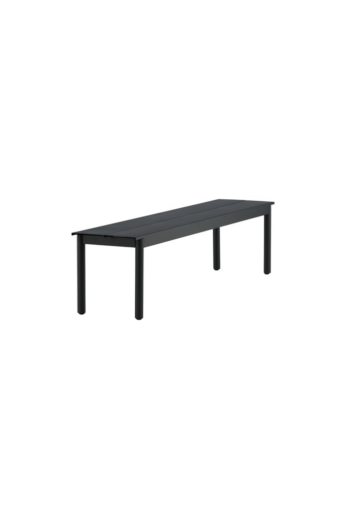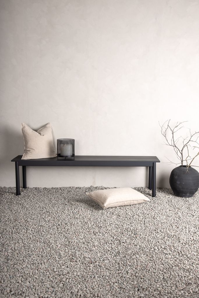 Elegant svart sittbänk i slitstarkt aluminium, perfekt för att förgylla ditt utomhusutrymme med stil och komfort.