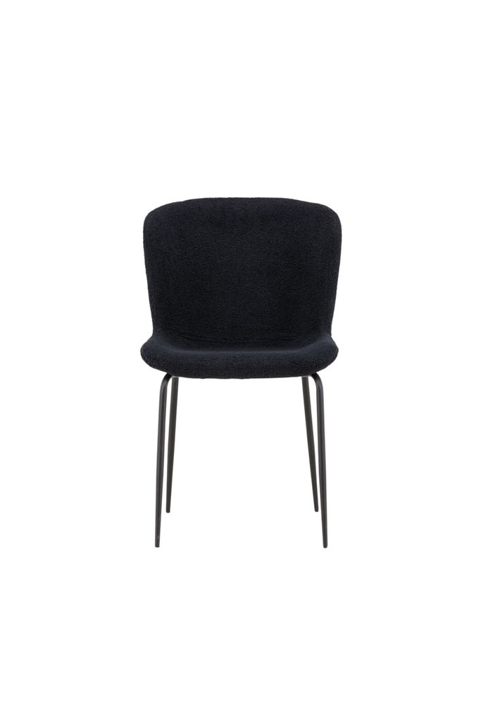Modesto matstol kombinerar elegans och modernitet med mjukt teddymaterial och stilrena stålben.