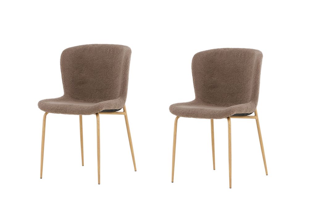 Venture Home Modesto matstol är ett perfekt val för dig som vill kombinera stil och komfort i ditt matrum. Klädd i ett mjukt teddymaterial i en elegant brun nyans ger denna stol en varm och inbjudande känsla. De slanka benen i mocca-färgat stål bidrar med en modern touch som kompletterar den jordnära estetiken.