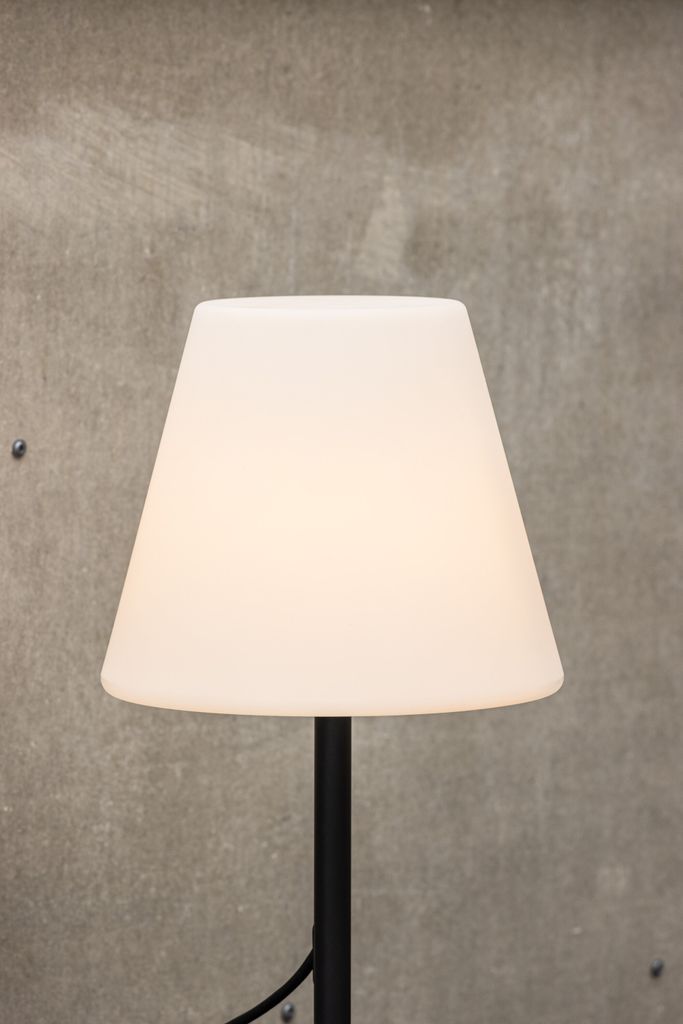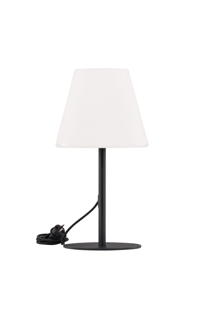 Venture Home Moris bordslampa är den perfekta lösningen för att lysa upp din utomhusmiljö med både stil och funktionalitet. Lampan har en elegant svart-vit design, vilket gör den till ett tidlöst tillskott till din trädgård, uteplats eller balkong. Ljusskärmen i vit plast ger ett mjukt och inbjudande sken, samtidigt som den svarta stålbasen ger en stabil och modern kontrast.