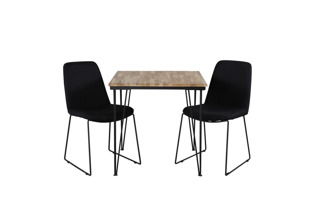 Venture Home Muce & Bali 2 st Matstolar Svart + Rektangulärt Matbord 80 x 80 Natur