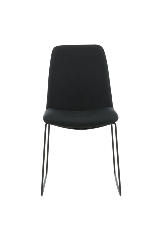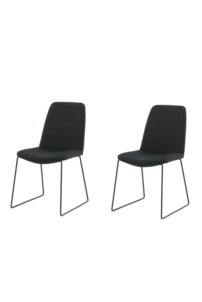 Stilrena matstolar i helklädd minimalistisk design med svart polyestertyg och pulverlackerade metallben för modern elegans.