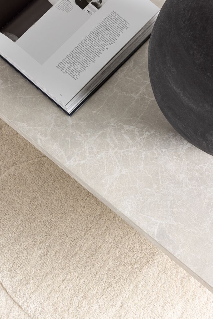Narvik är ett stilrent soffbord i beige MDF som skapar en modern och fridfull atmosfär i ditt hem.