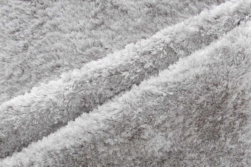 Mjuk och silkeslen matta i silver med färgskiftningar, perfekt för sovrum och vardagsrum.