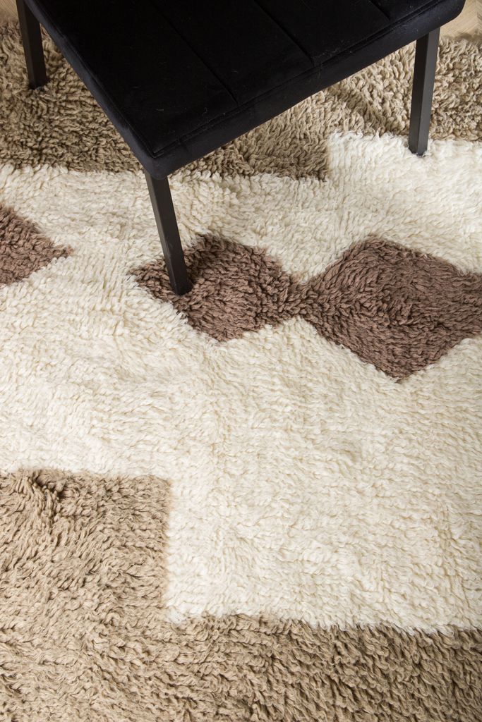 Abstrakt och mysig ullmatta med jordnära färger, perfekt för att skapa en sofistikerad atmosfär.